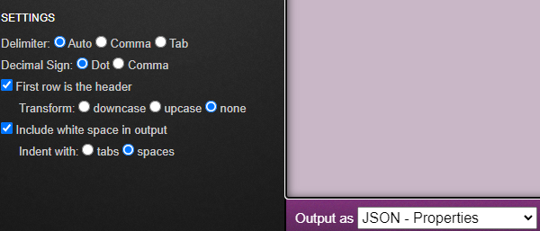 (잘 모르니까)초기 세팅은 건들지 않고 여기 상단에 갖다 붙여넣으면 하단에 알아서 json형식으로 변환된다!!!