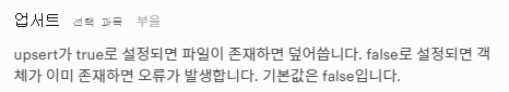 upsert : Update와 Insert를 합친 것으로, 존재하지 않을 경우, Insert하고 존재할 경우, 현재 내용을 덮어쓰는 유용한 쿼리